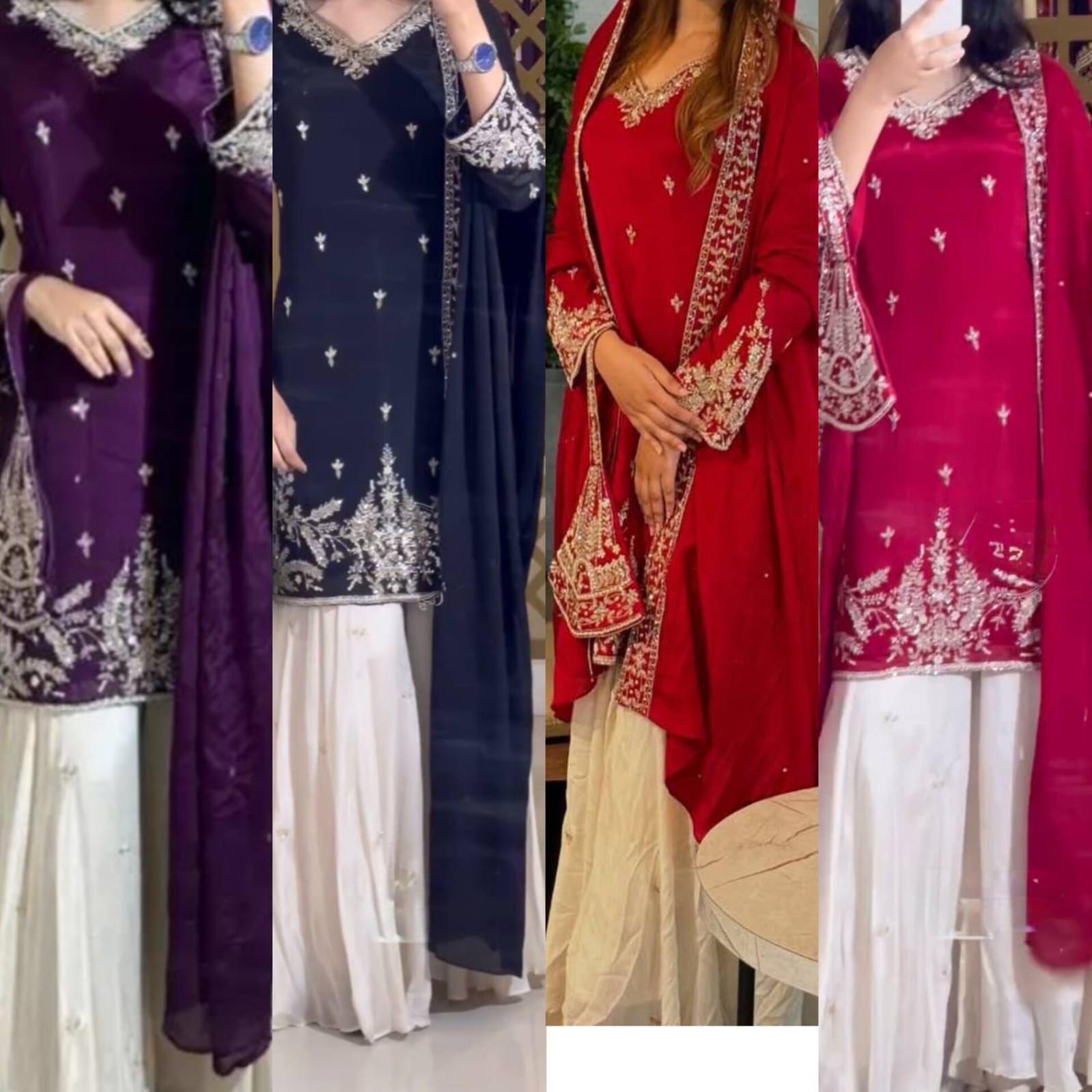 · Work :-Heavy Embroidery 5 mm Sequence Work With Fancy Moti Latkan Border With Sleeve