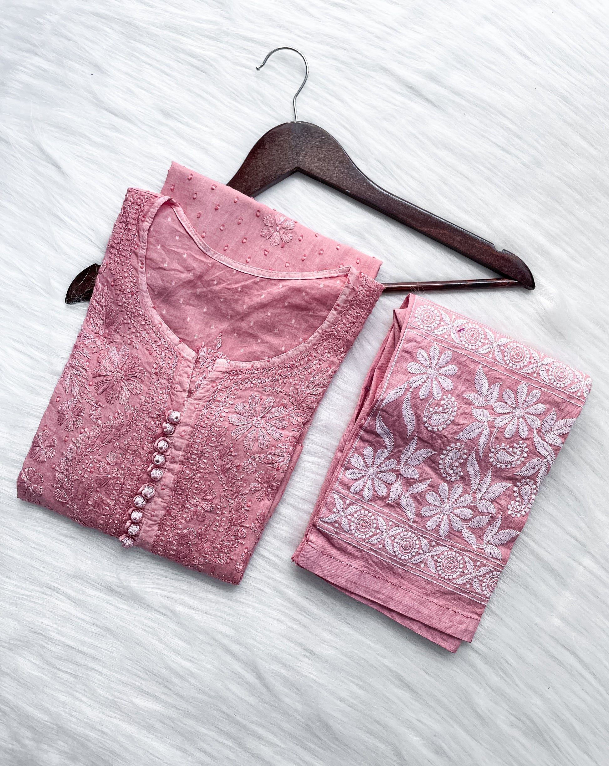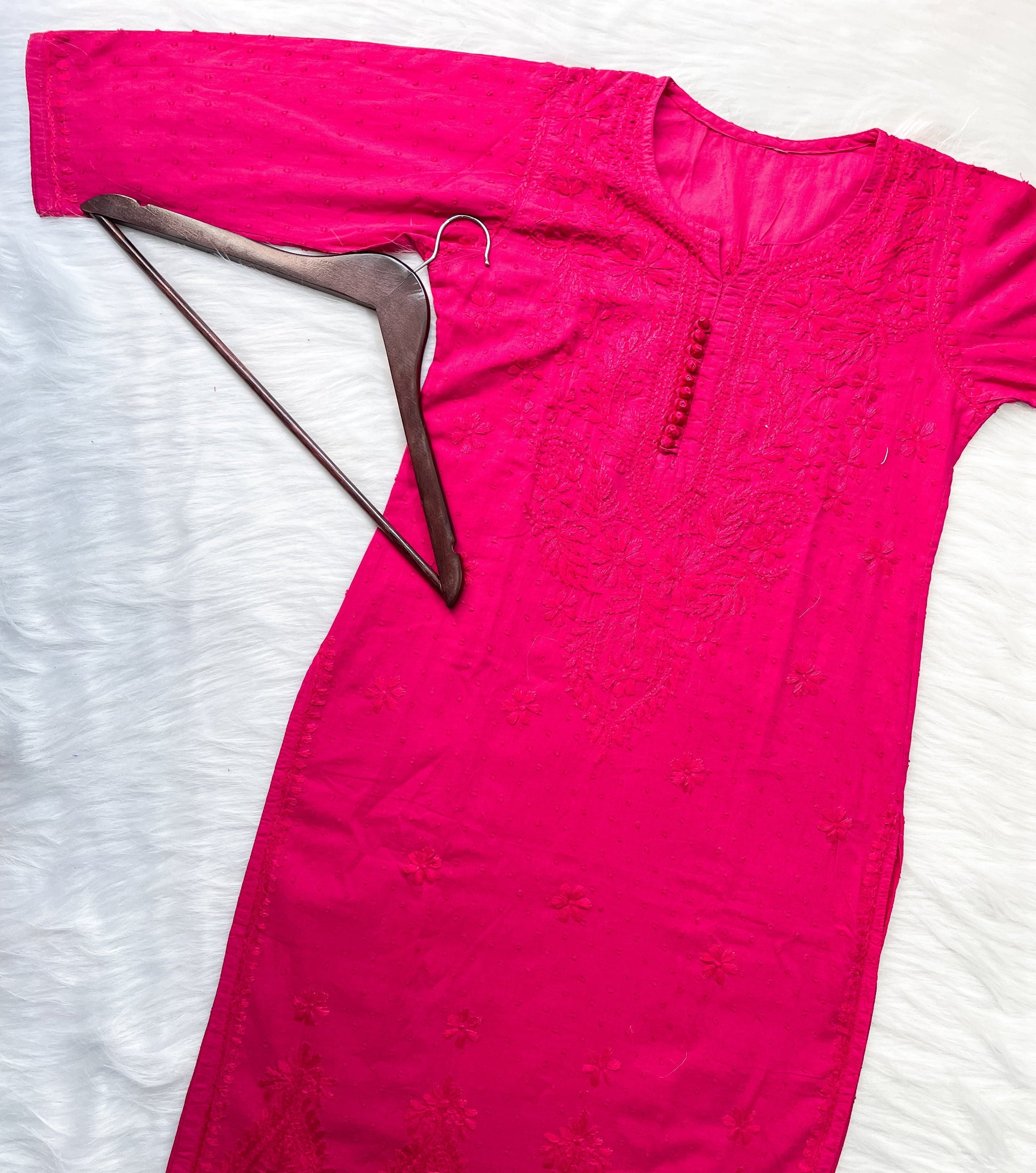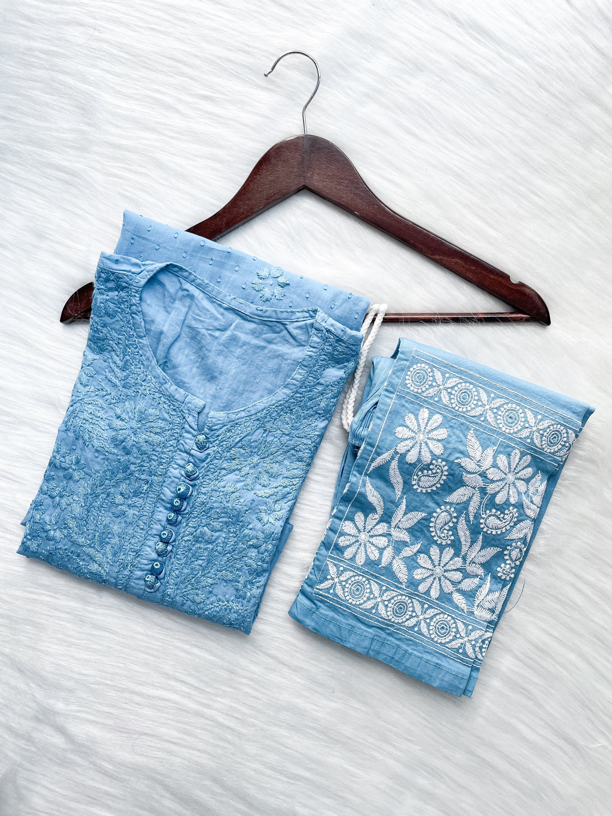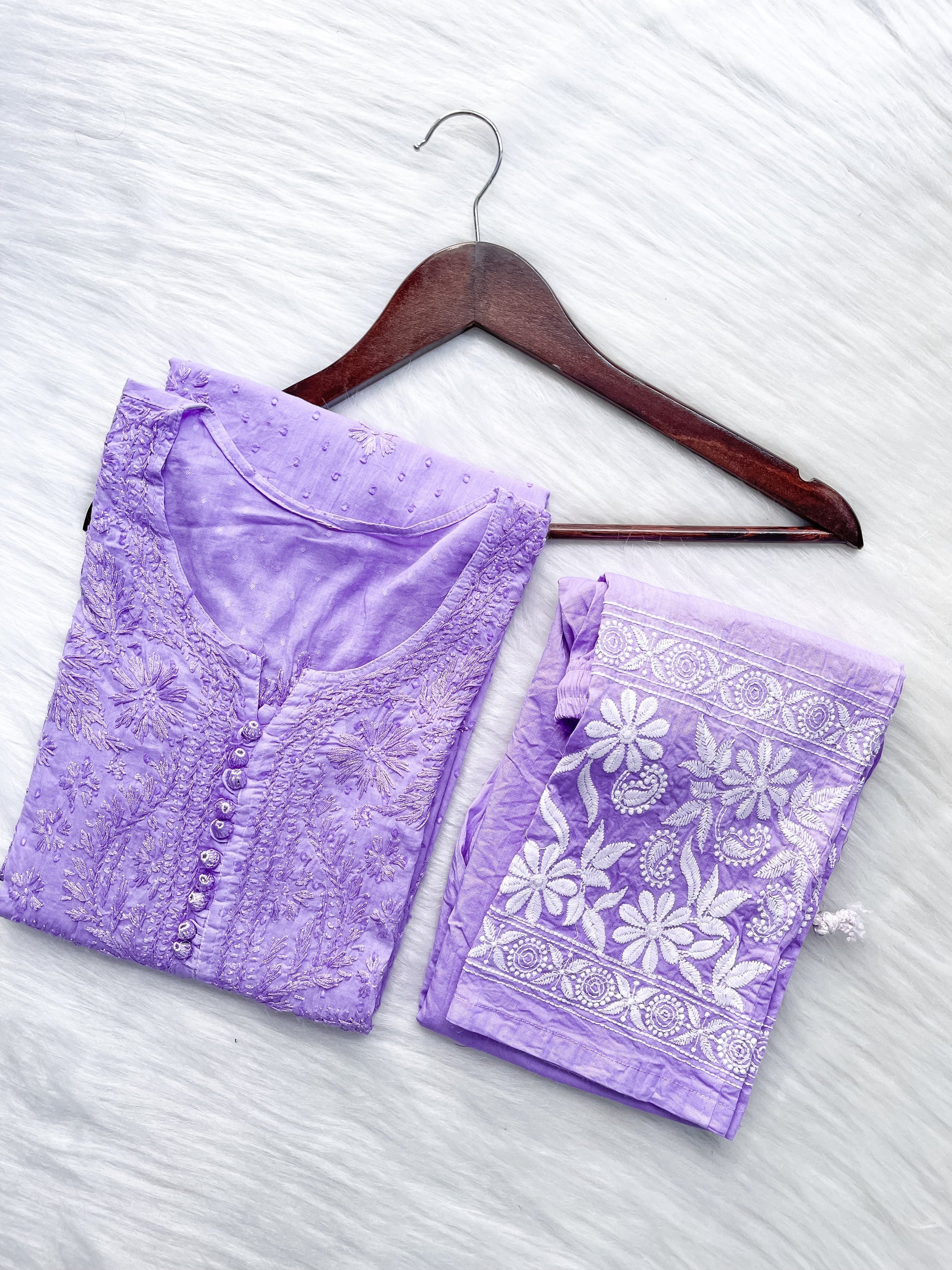 Dyed Cotton Chikankari Kurti & Lycra Pant Set, Pockets Both Side of the Pant