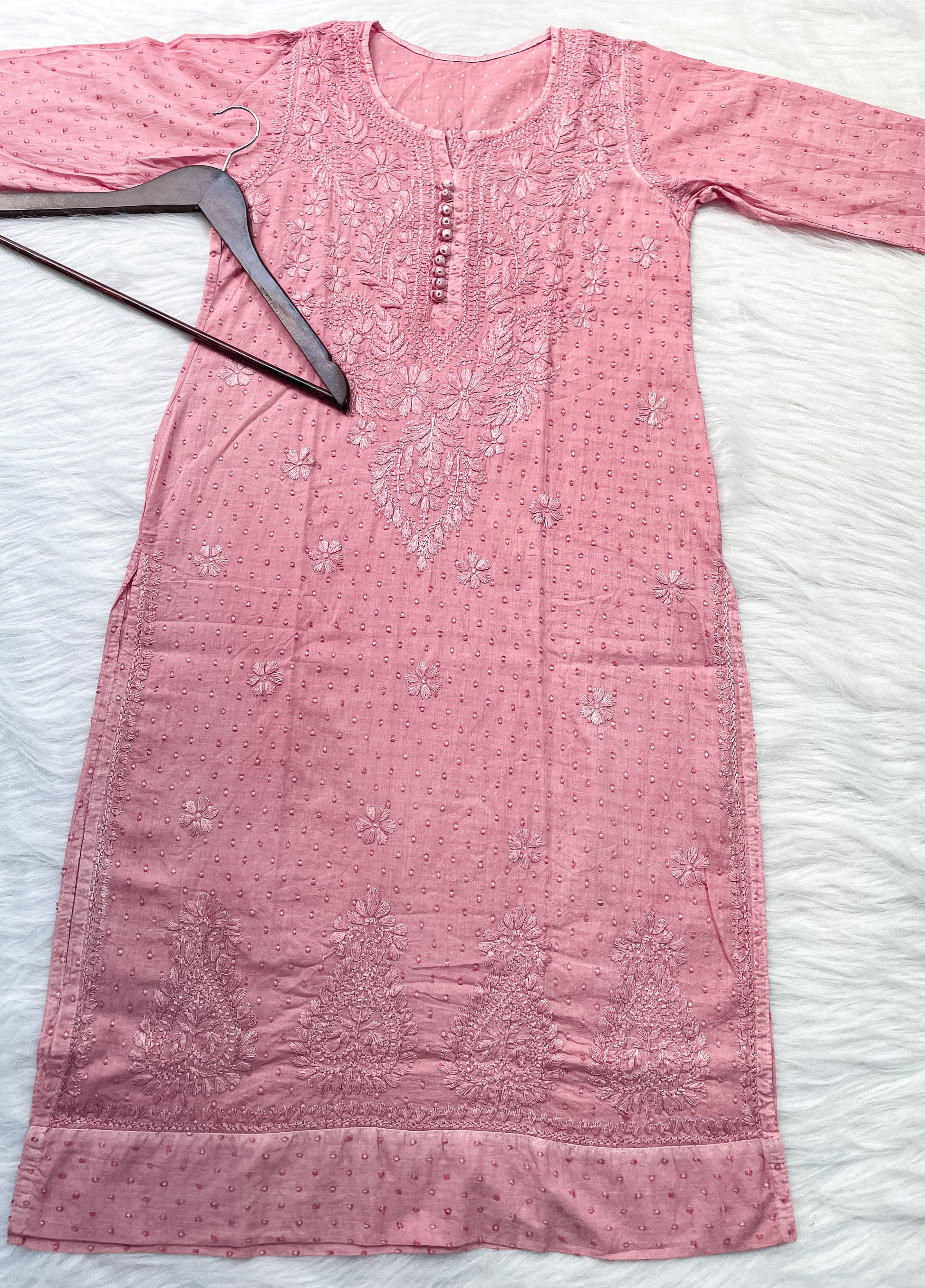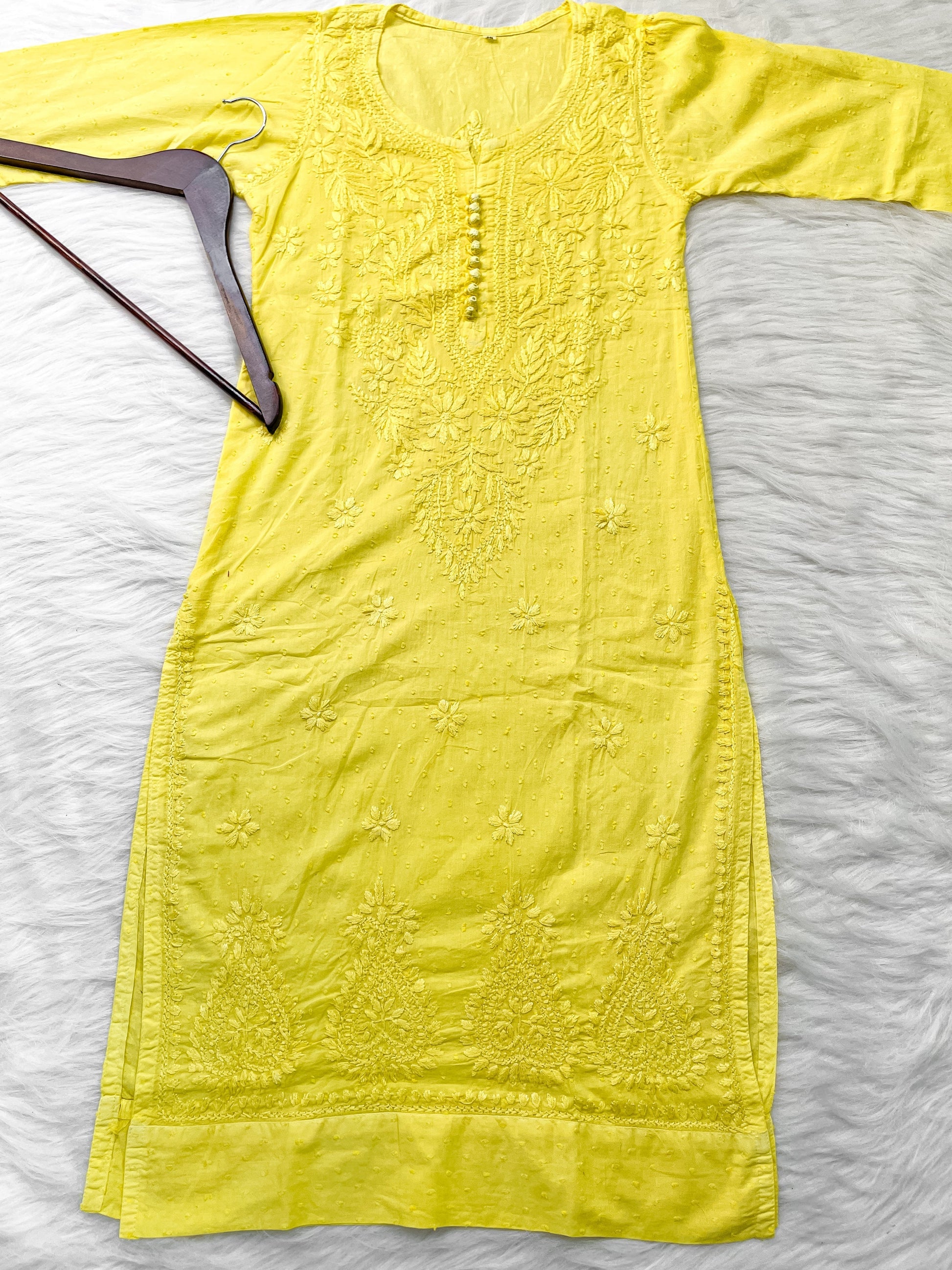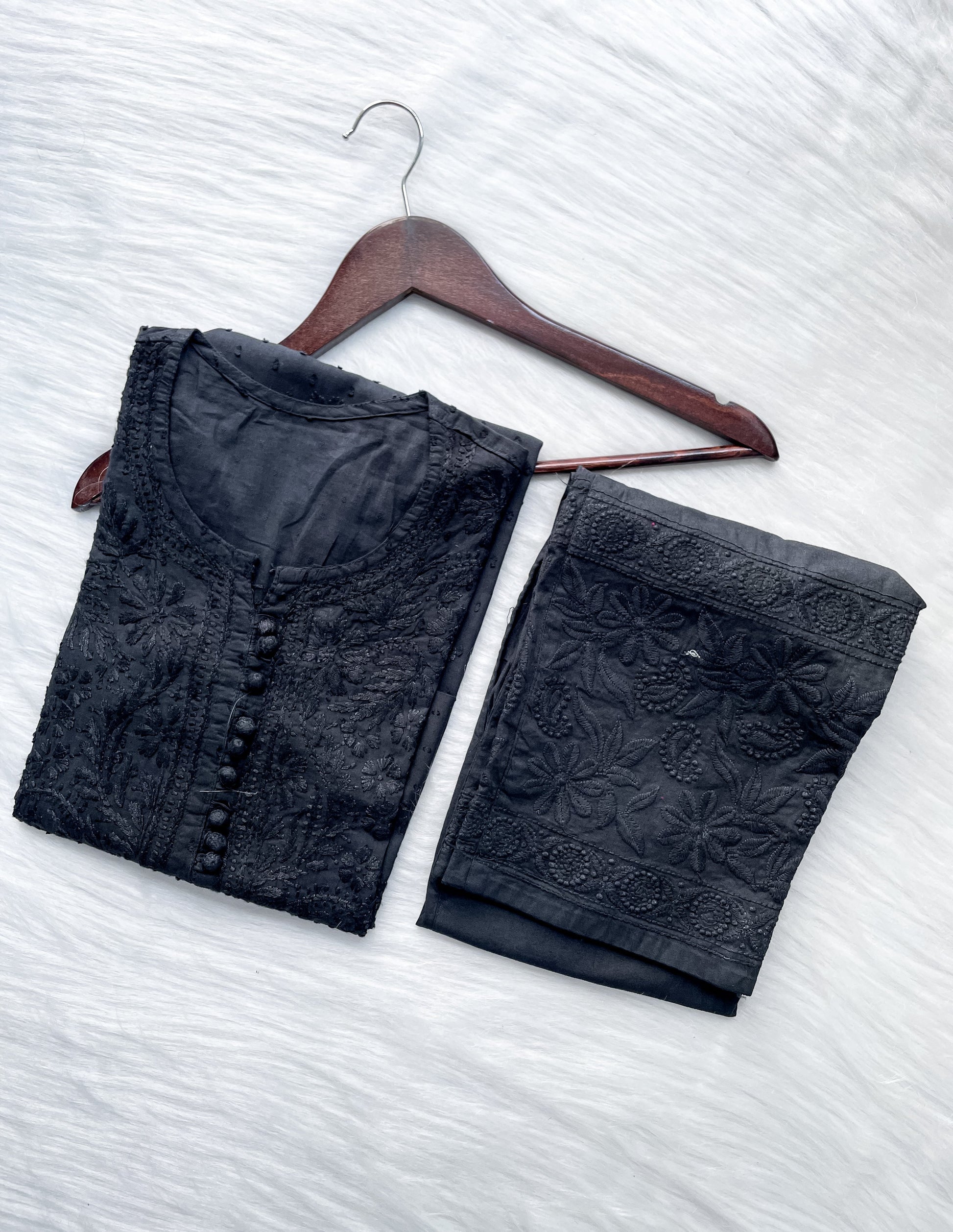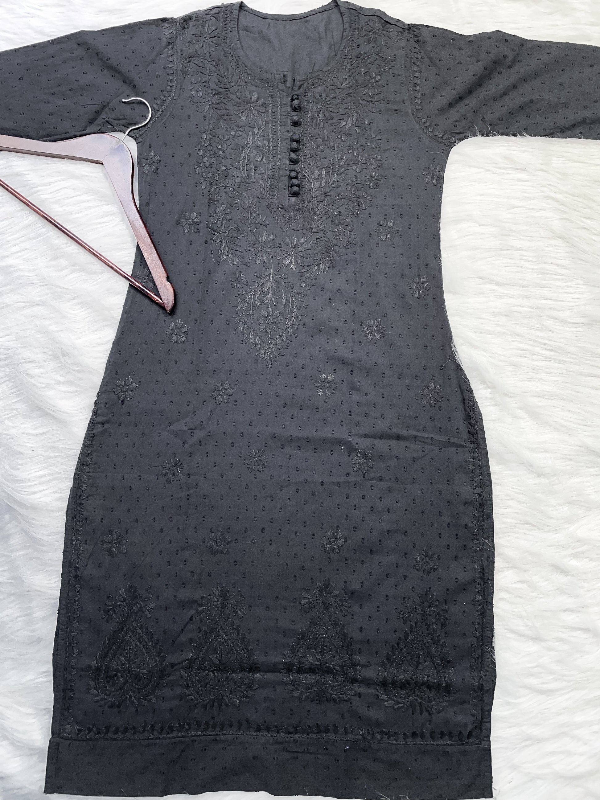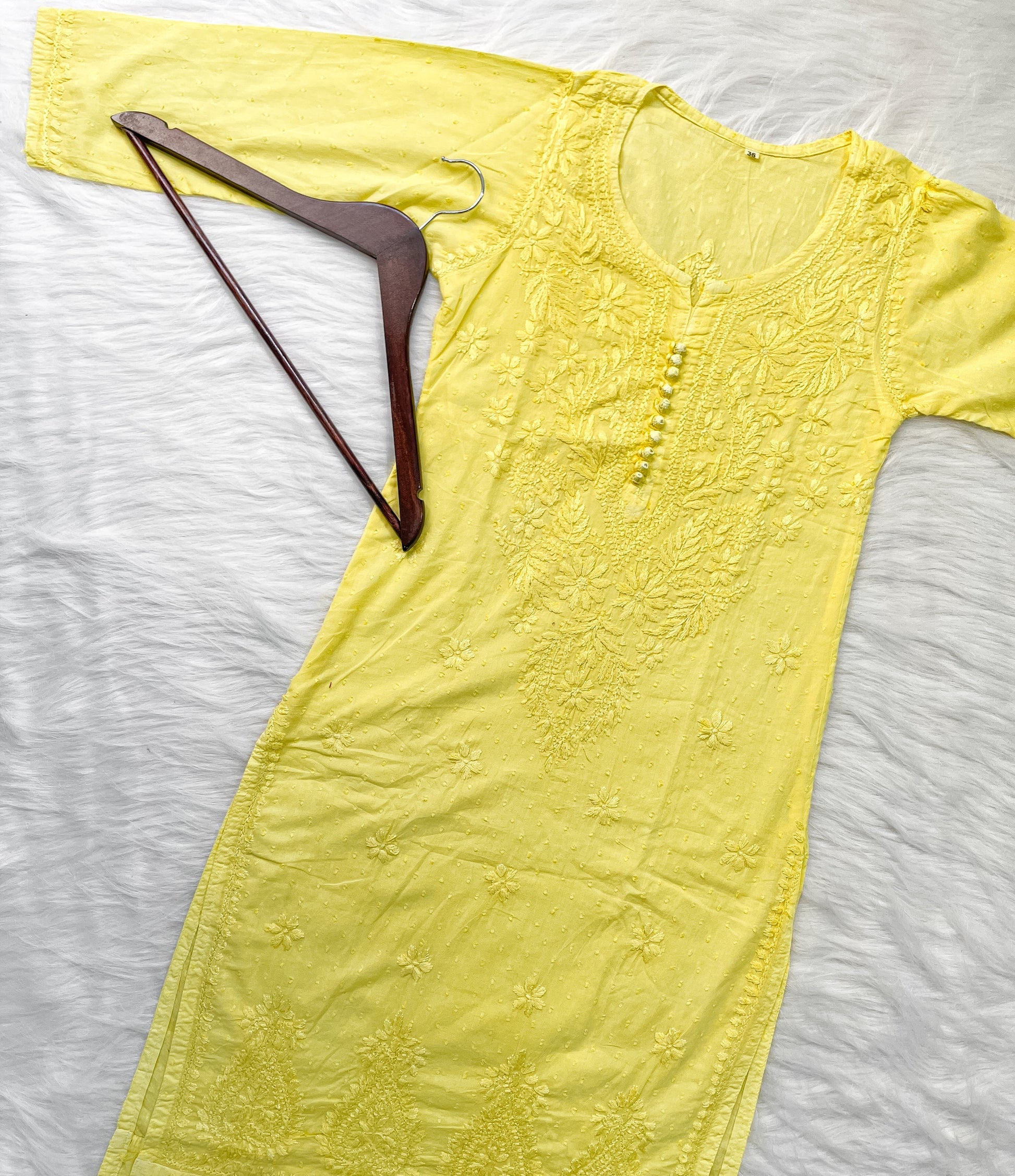 Dyed Cotton Chikankari Kurti & Lycra Pant Set, Pockets Both Side of the Pant