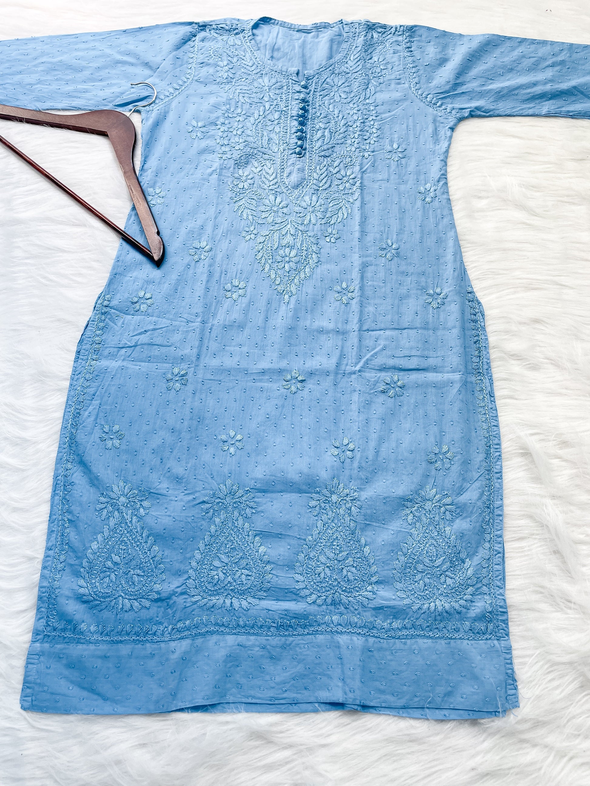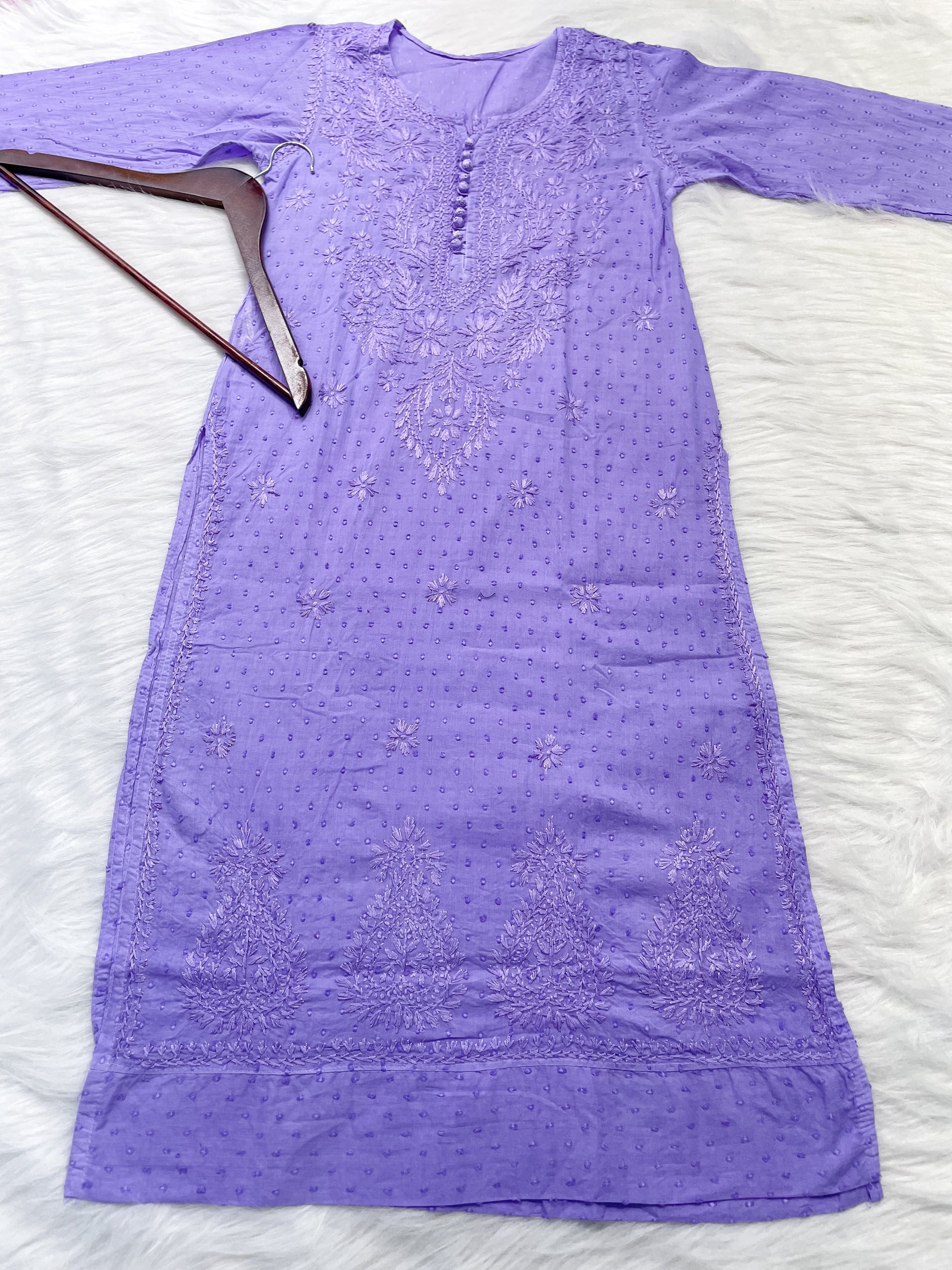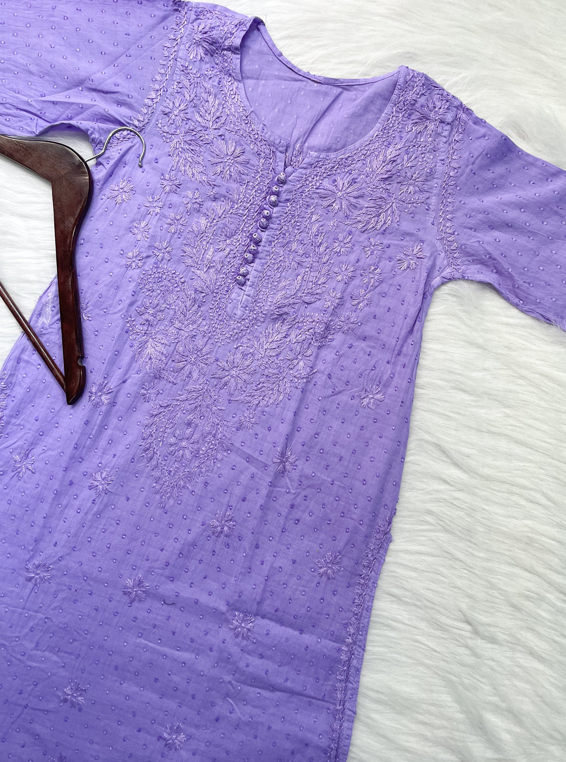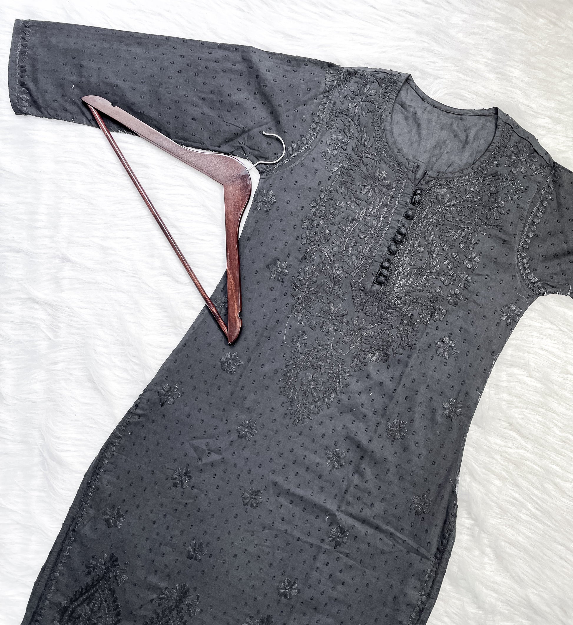 Dyed Cotton Chikankari Kurti & Lycra Pant Set, Pockets Both Side of the Pant