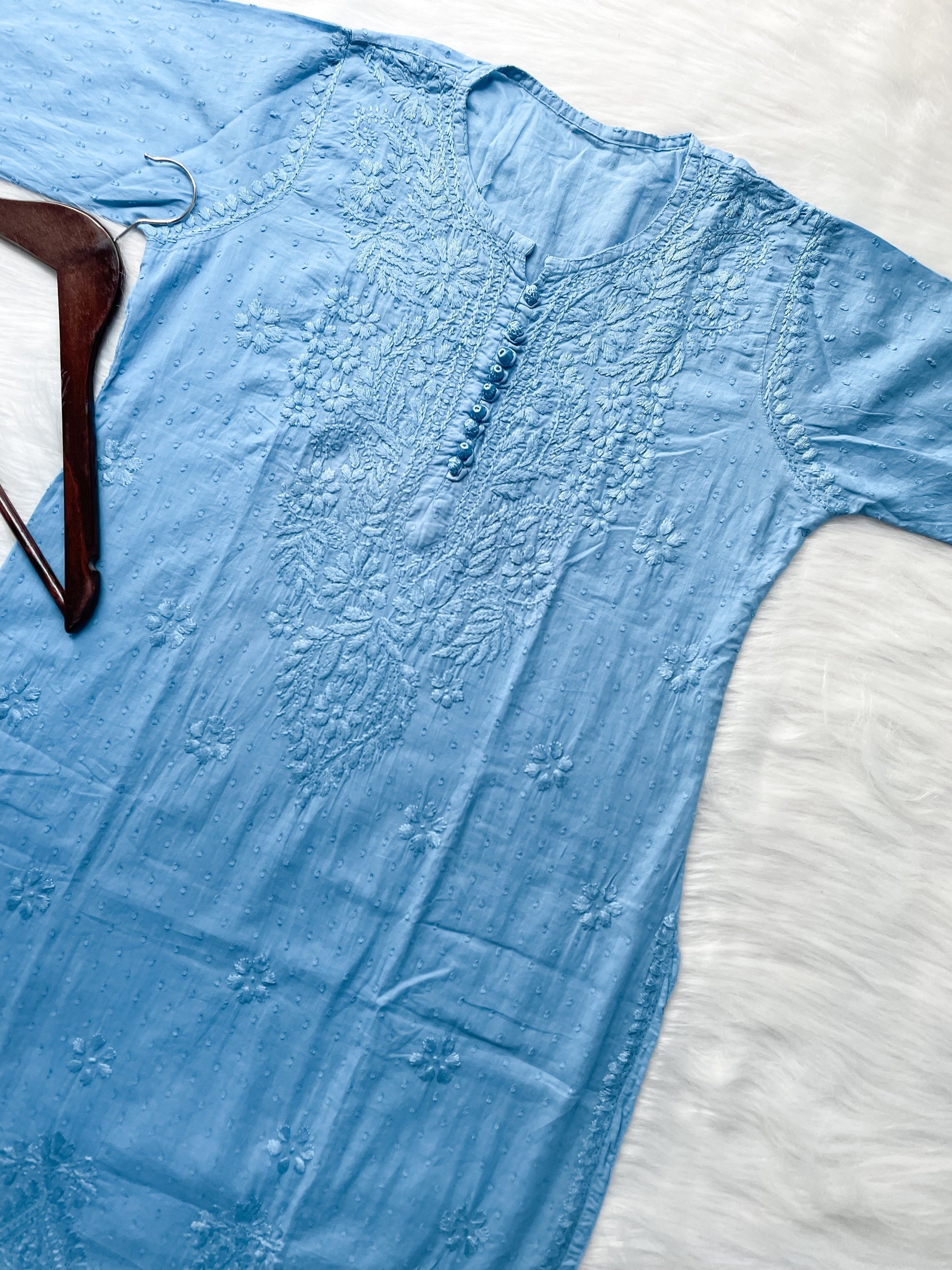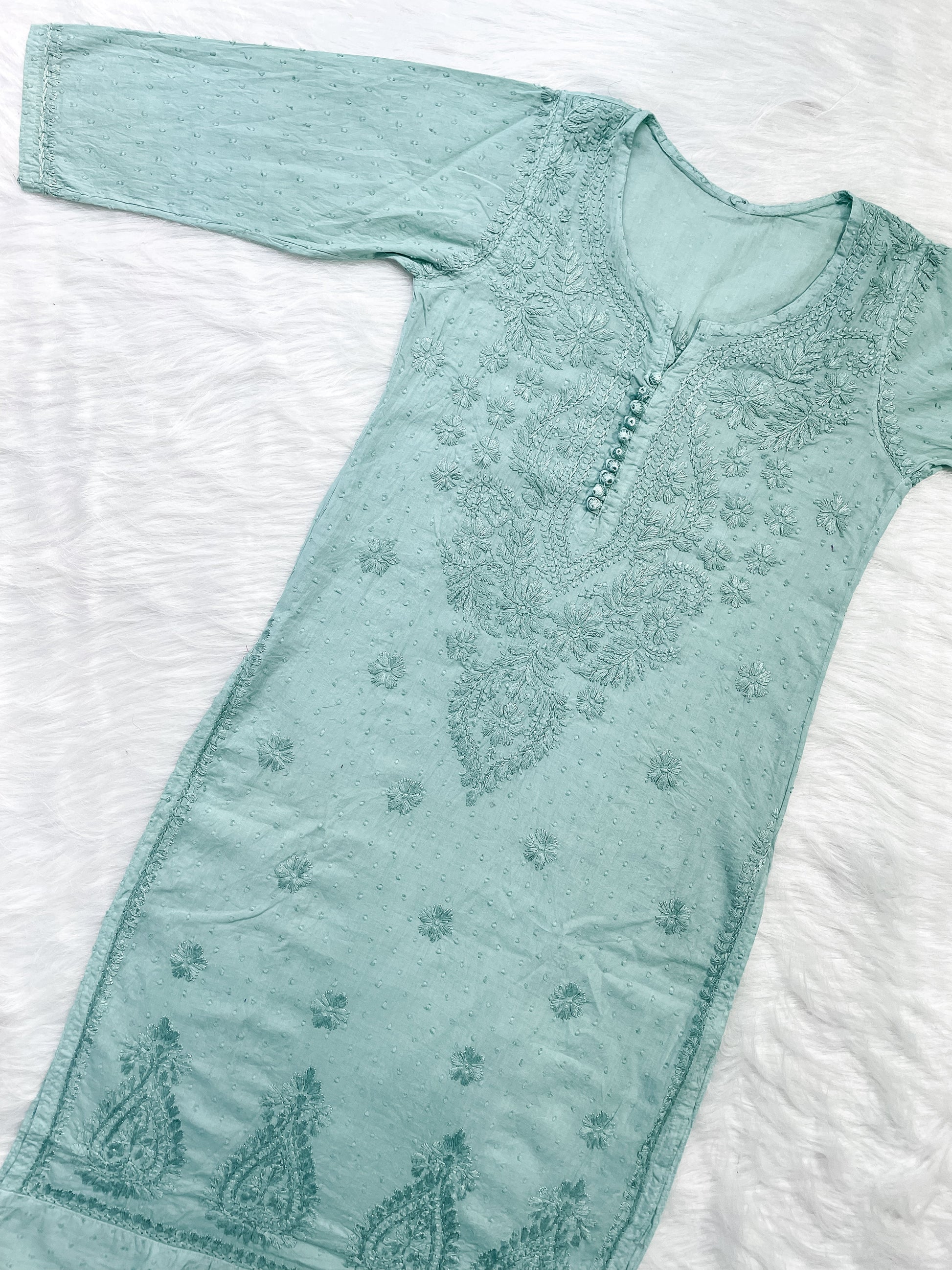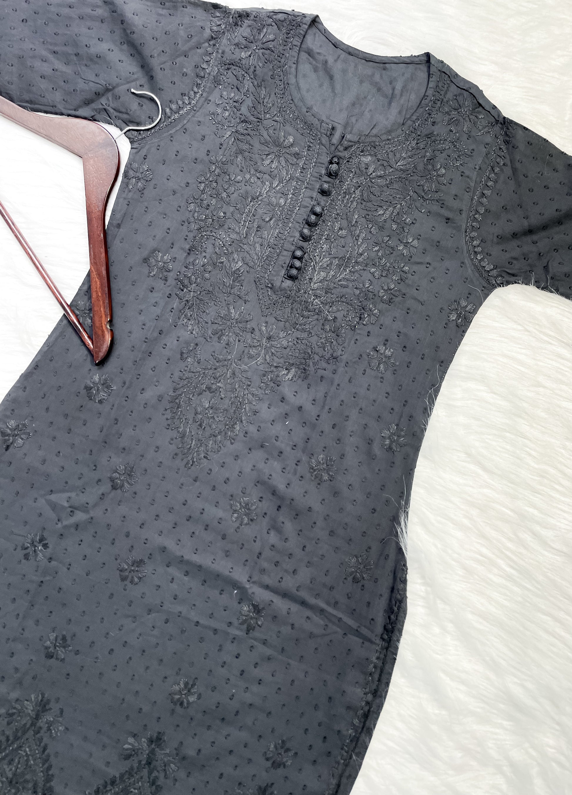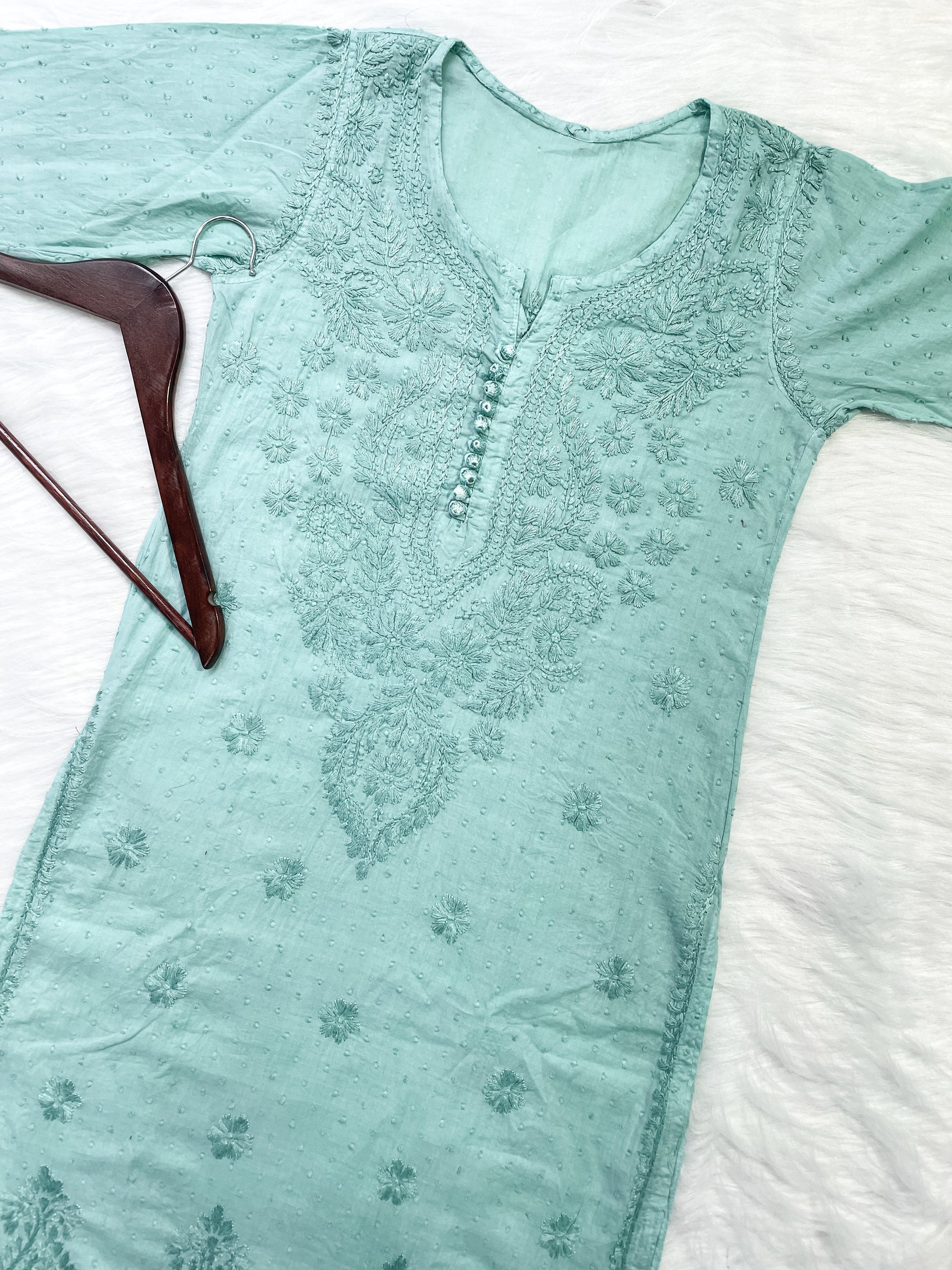 Dyed Cotton Chikankari Kurti & Lycra Pant Set, Pockets Both Side of the Pant