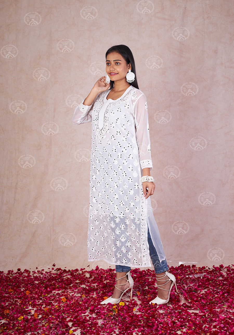 Style Name: Chiffon Georgette Mirror Work Chikankari Kurti