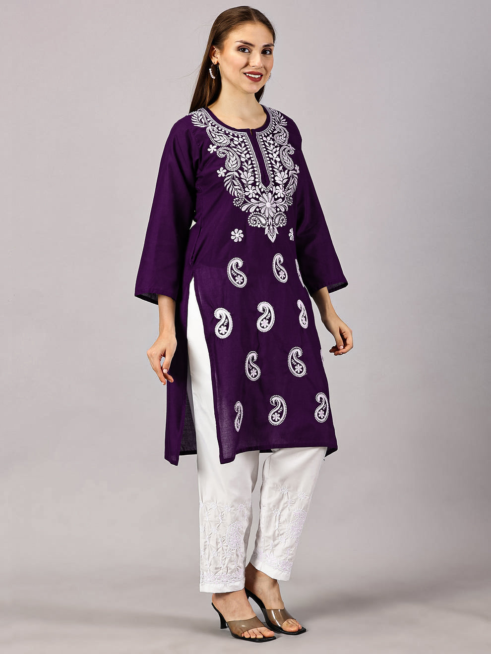 Style Name: Chikankari Cotton Kurti and Stretchable Lycra Pant Set