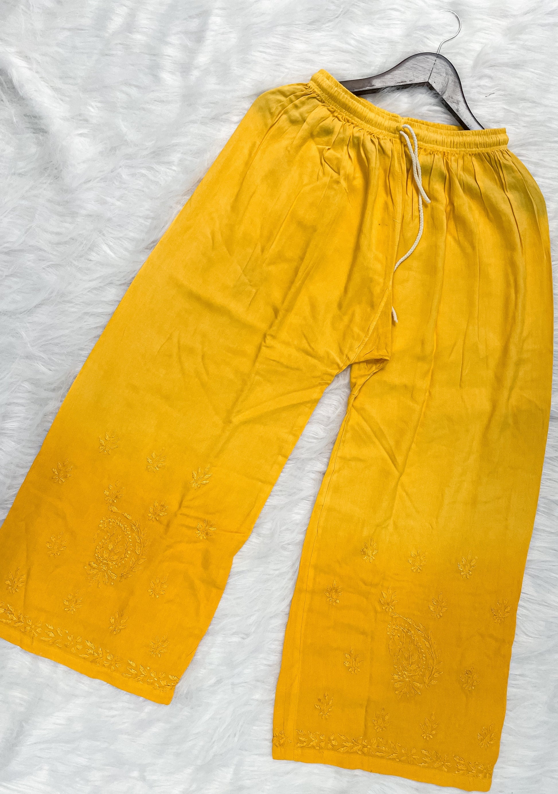 Style Name: Ombre Dyed Chikankari Rayon Kurti, Palazzo and Dupatta Set