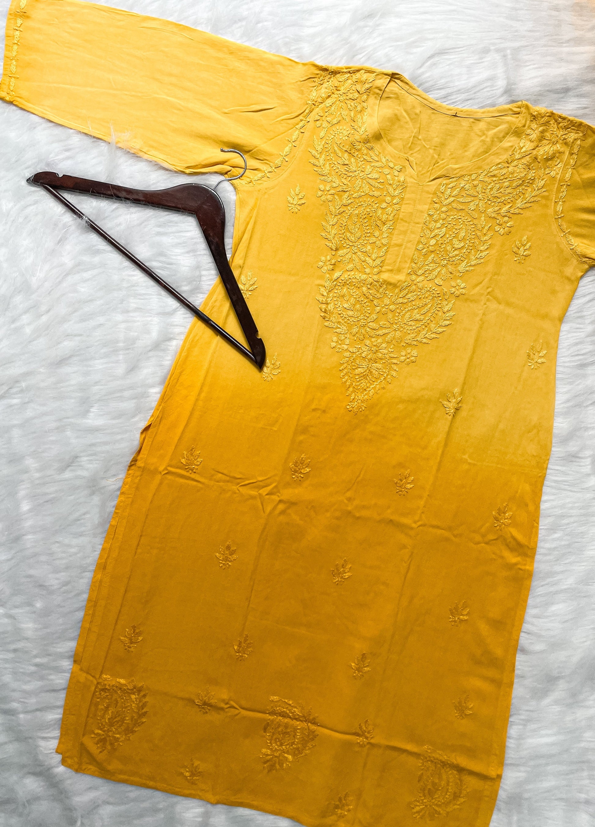 ✔ Exquisite Design: This ombre/shaded dyed soft rayon chikankari kurti set features an elegant and intricate chikan embroidery pattern on the kurti, adding a touch of sophistication to your ethnic wear.