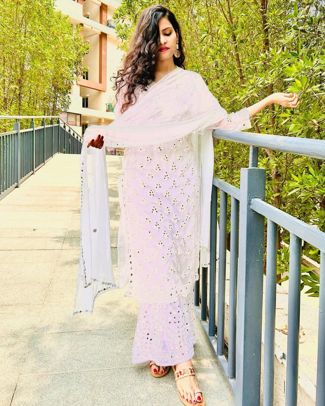✔ Exquisite Hand-Embroidered Chikankari Work: Features intricate Chikankari stitches like ‘Ulti Bakhiya,’ ‘Phanda,’ ‘Keel Kangan,’ and ‘Ghas Patti’ with real pasted mirror work, adding elegance and charm.