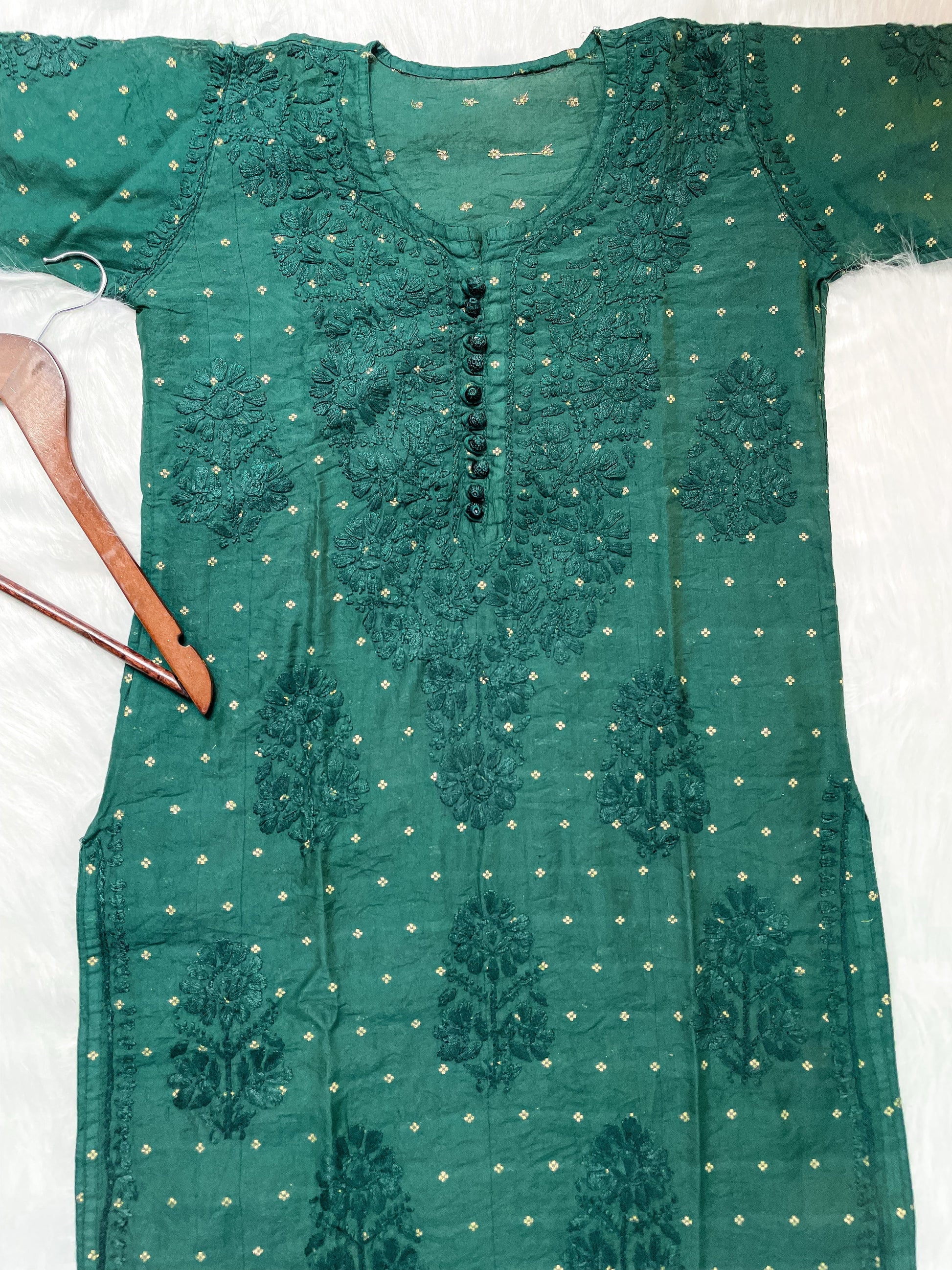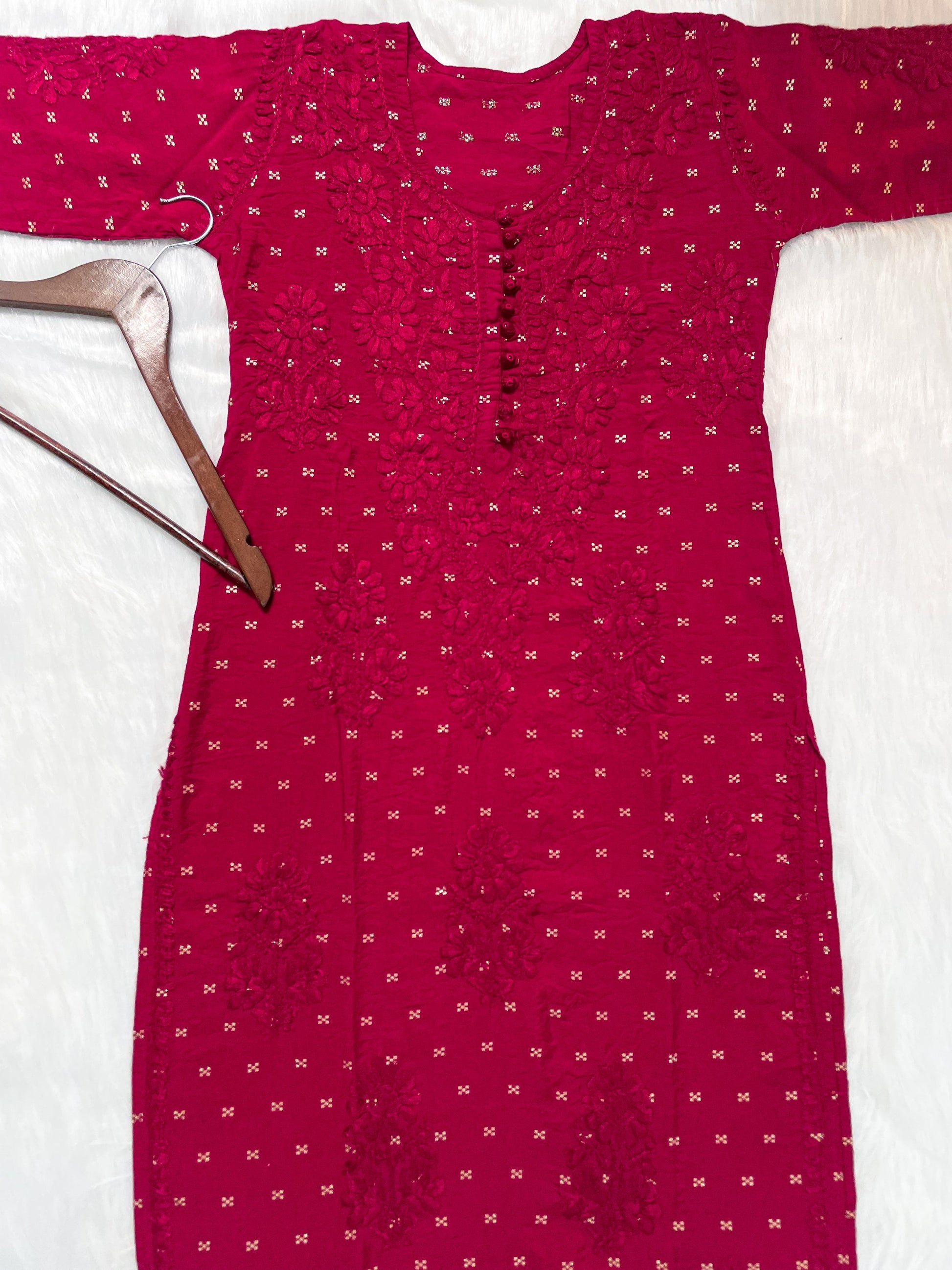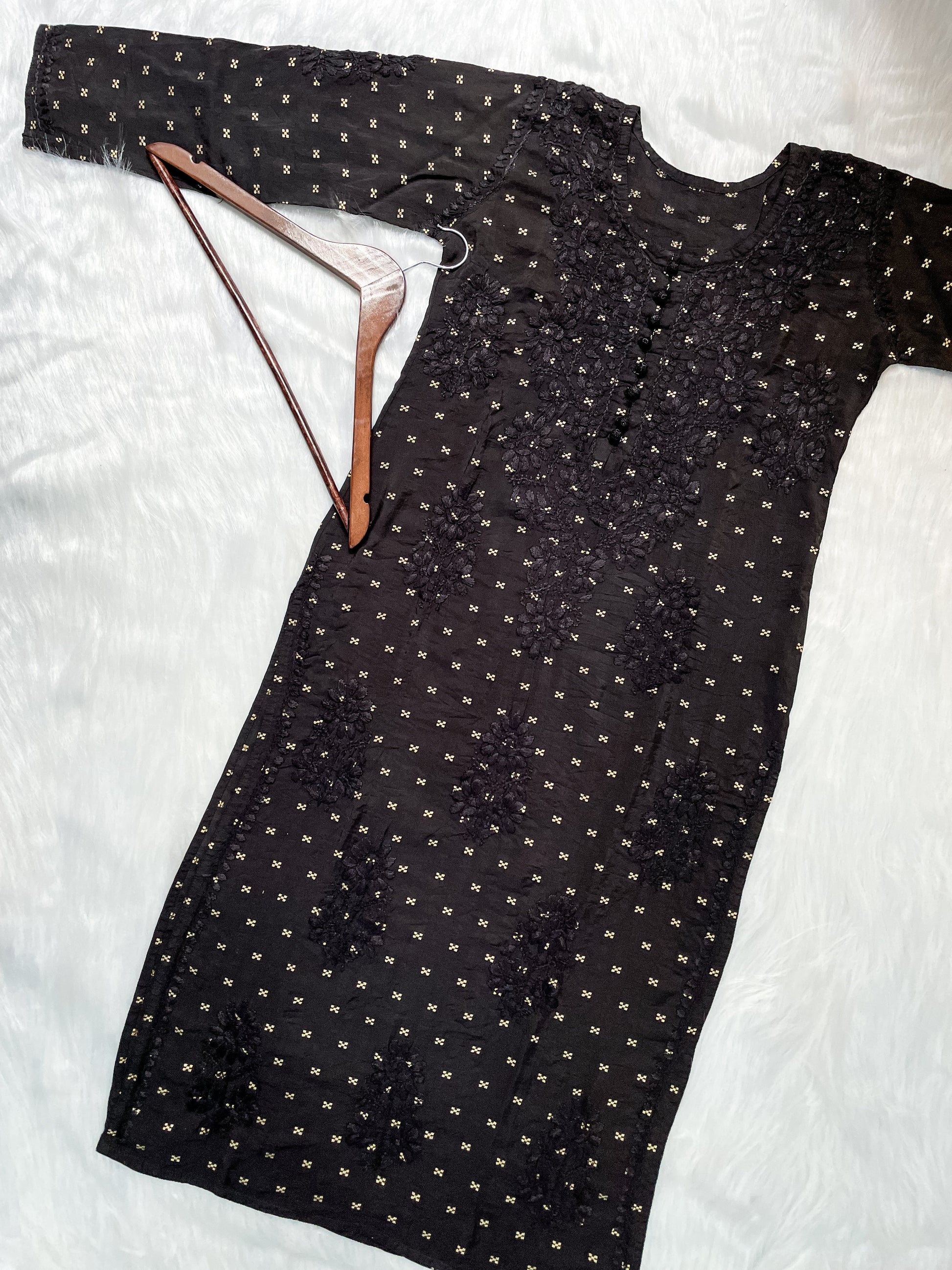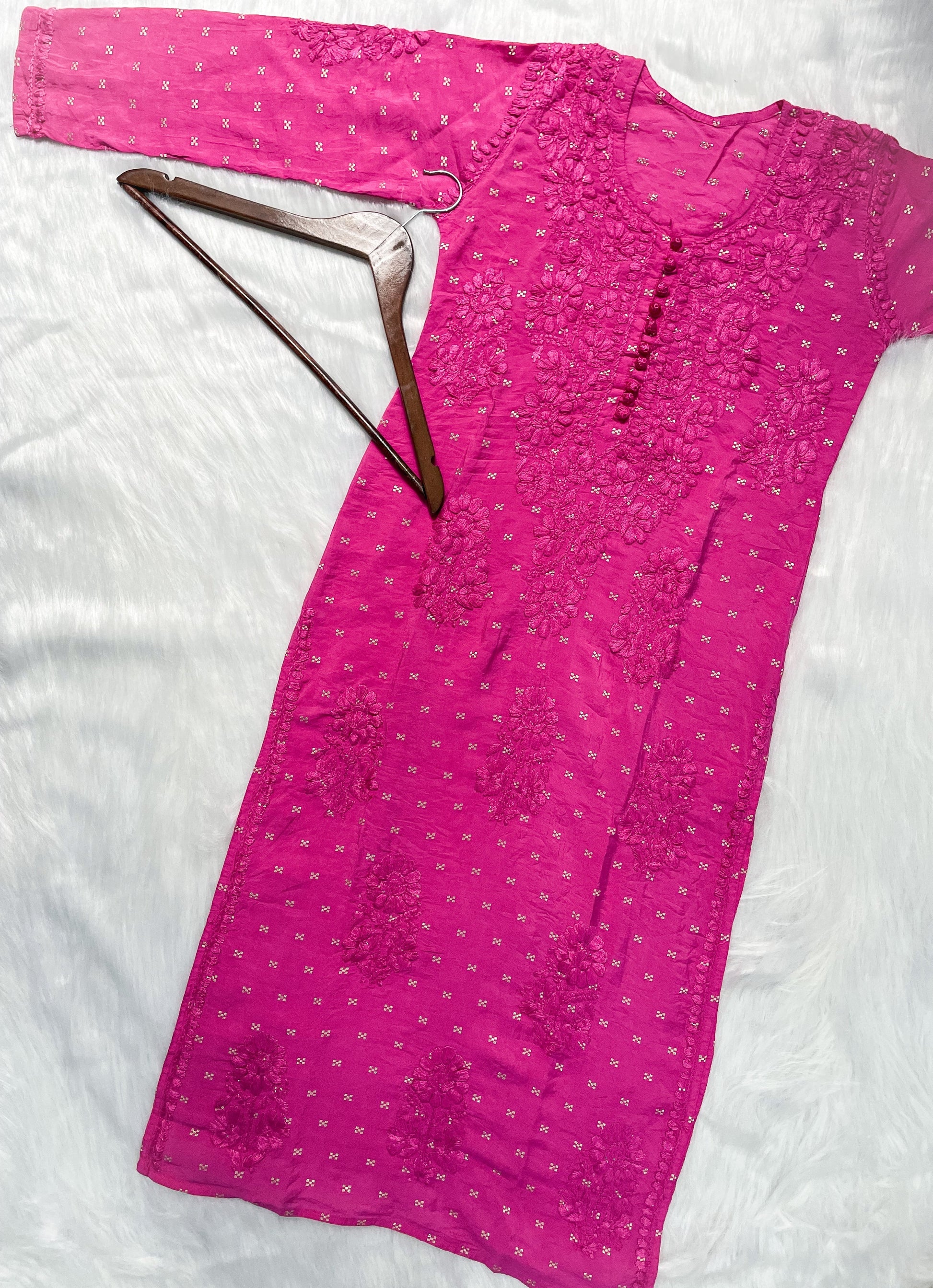 Premium Dyed Chanderi Silk Lucknowi Chikankari Kurti and Palazzo Set for Women