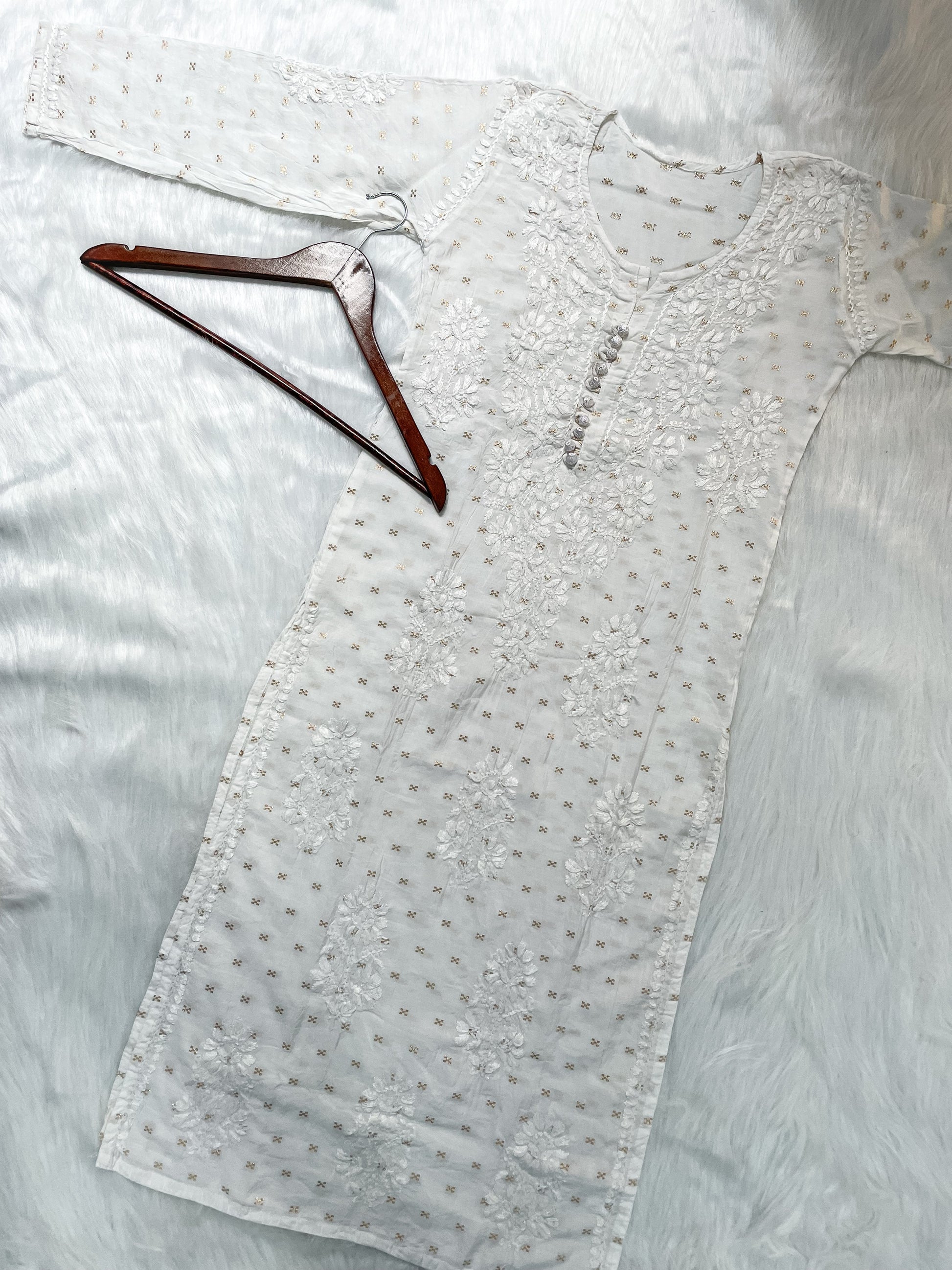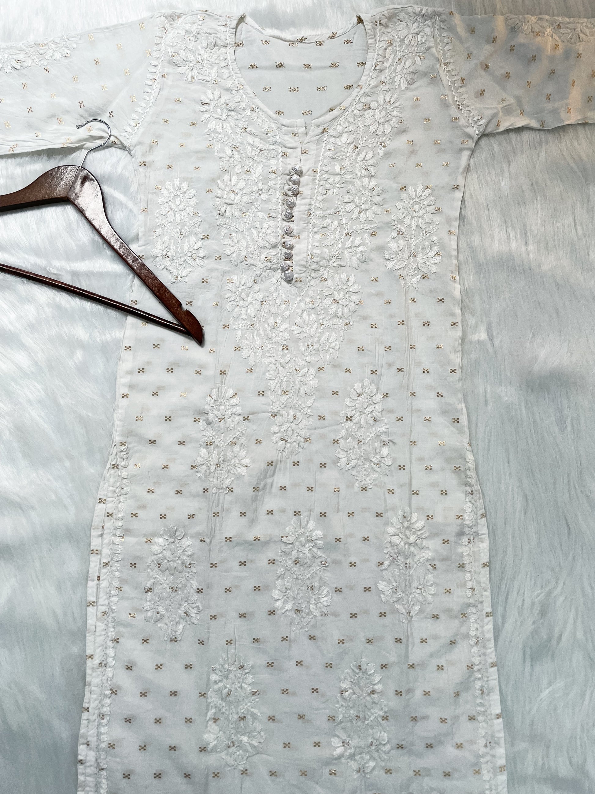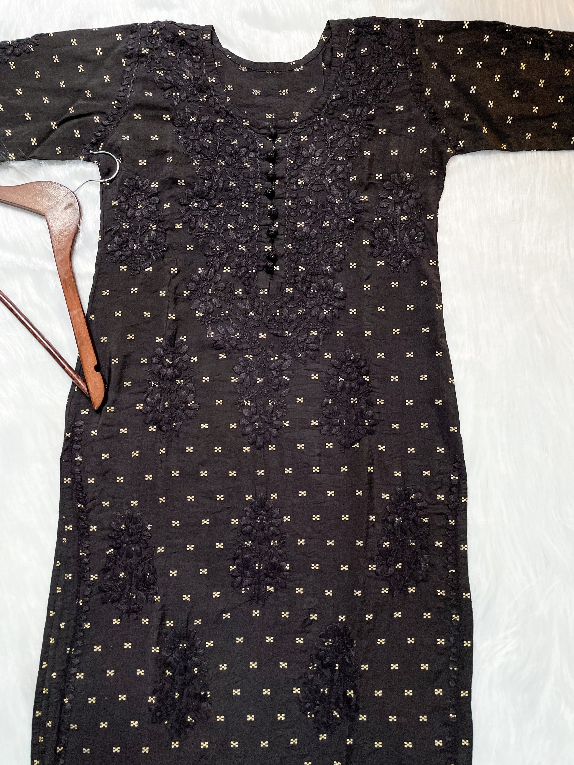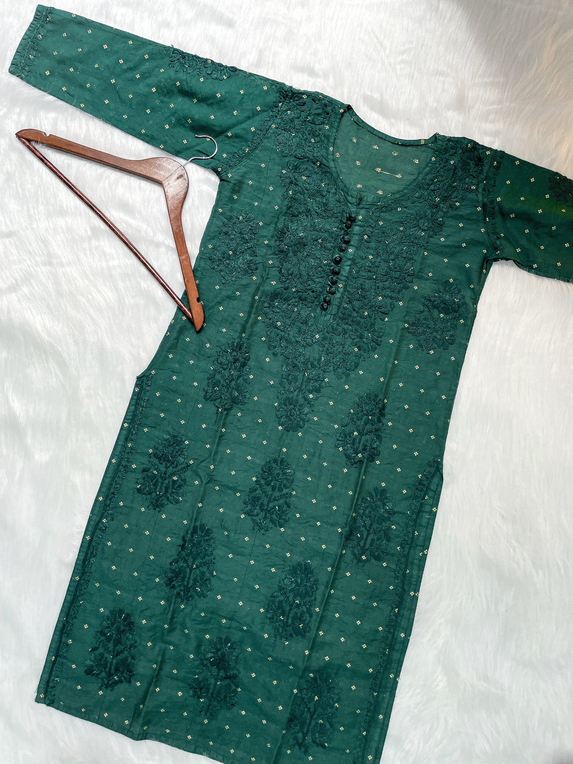 Premium Dyed Chanderi Silk Lucknowi Chikankari Kurti and Palazzo Set for Women