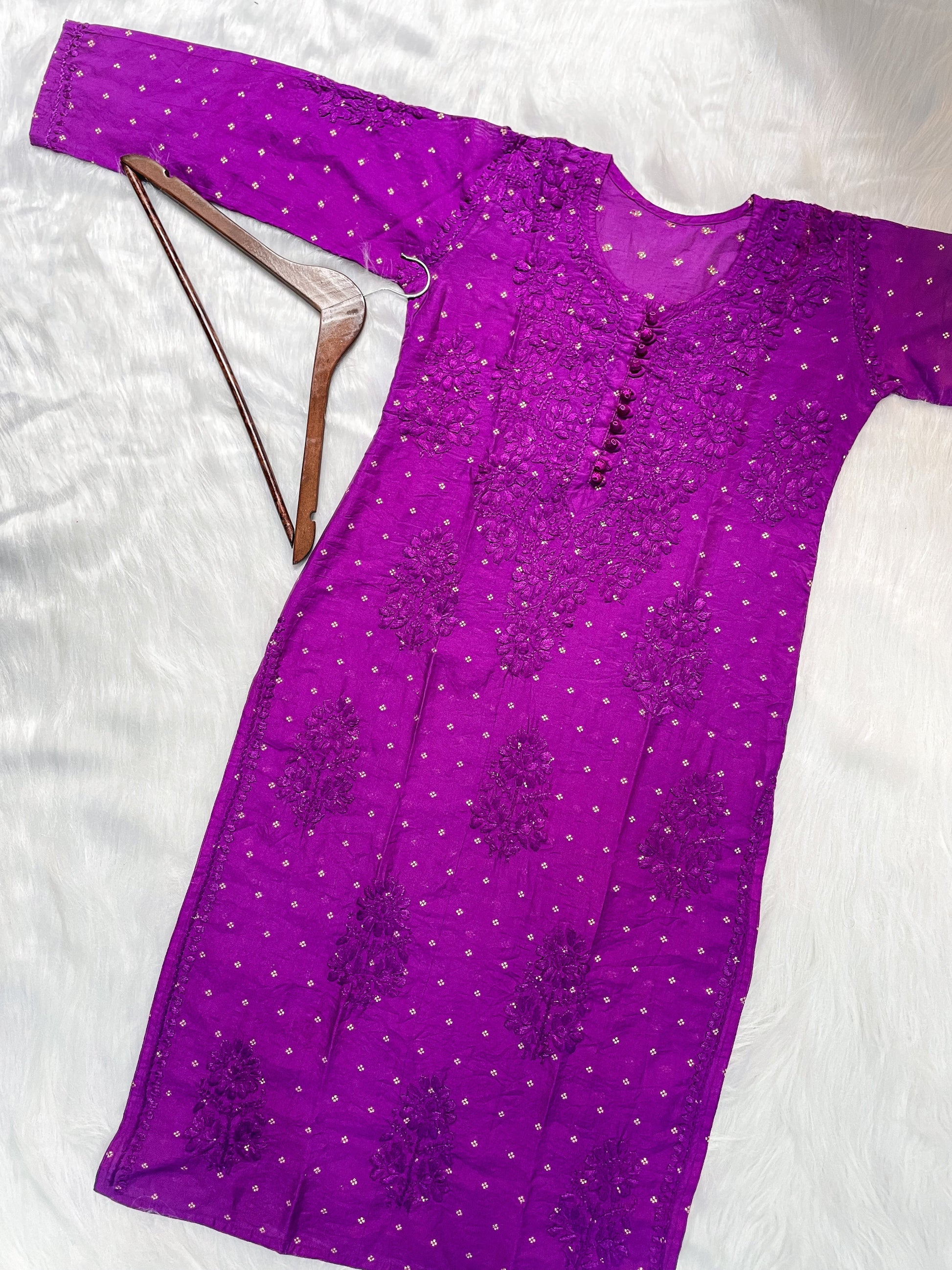 Style Name: Dyed Chikankari Chanderi Kurti And Palazzo Set