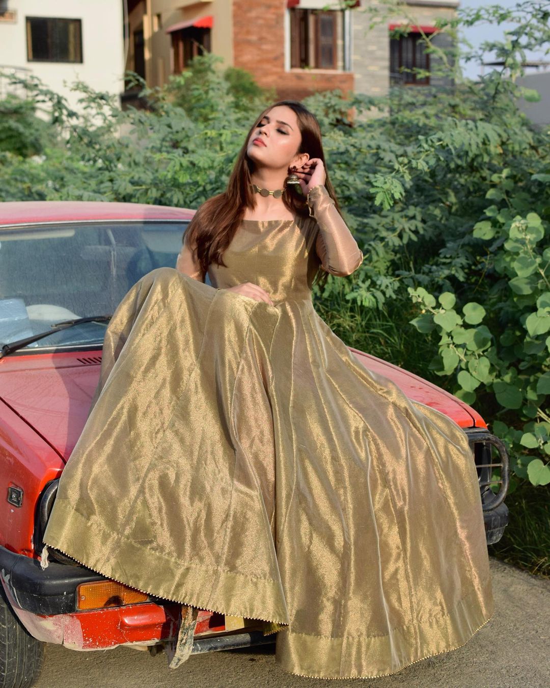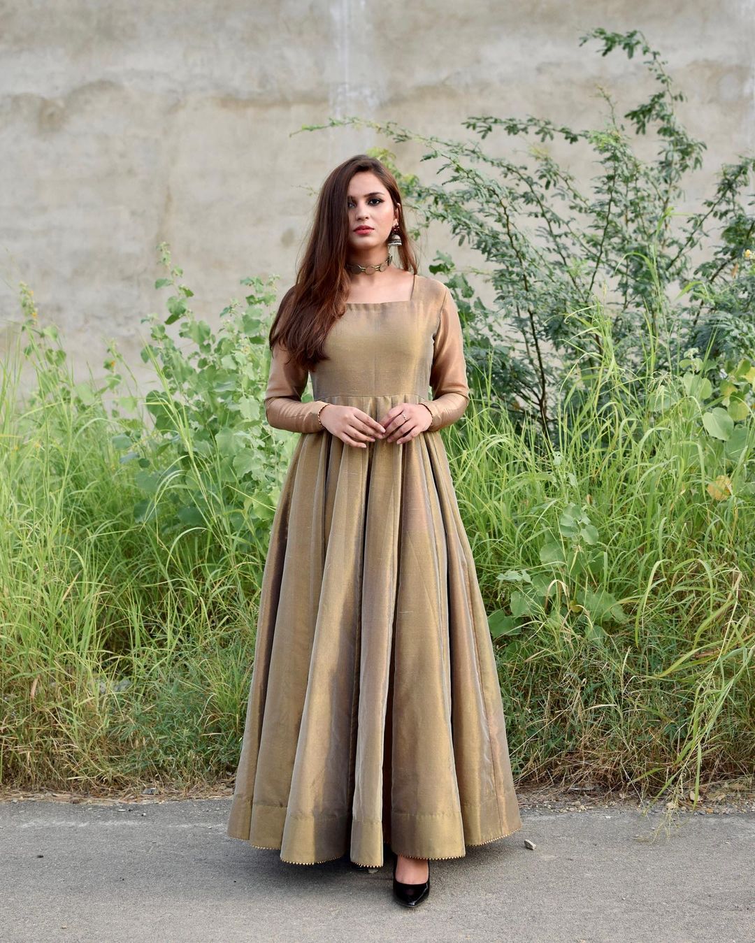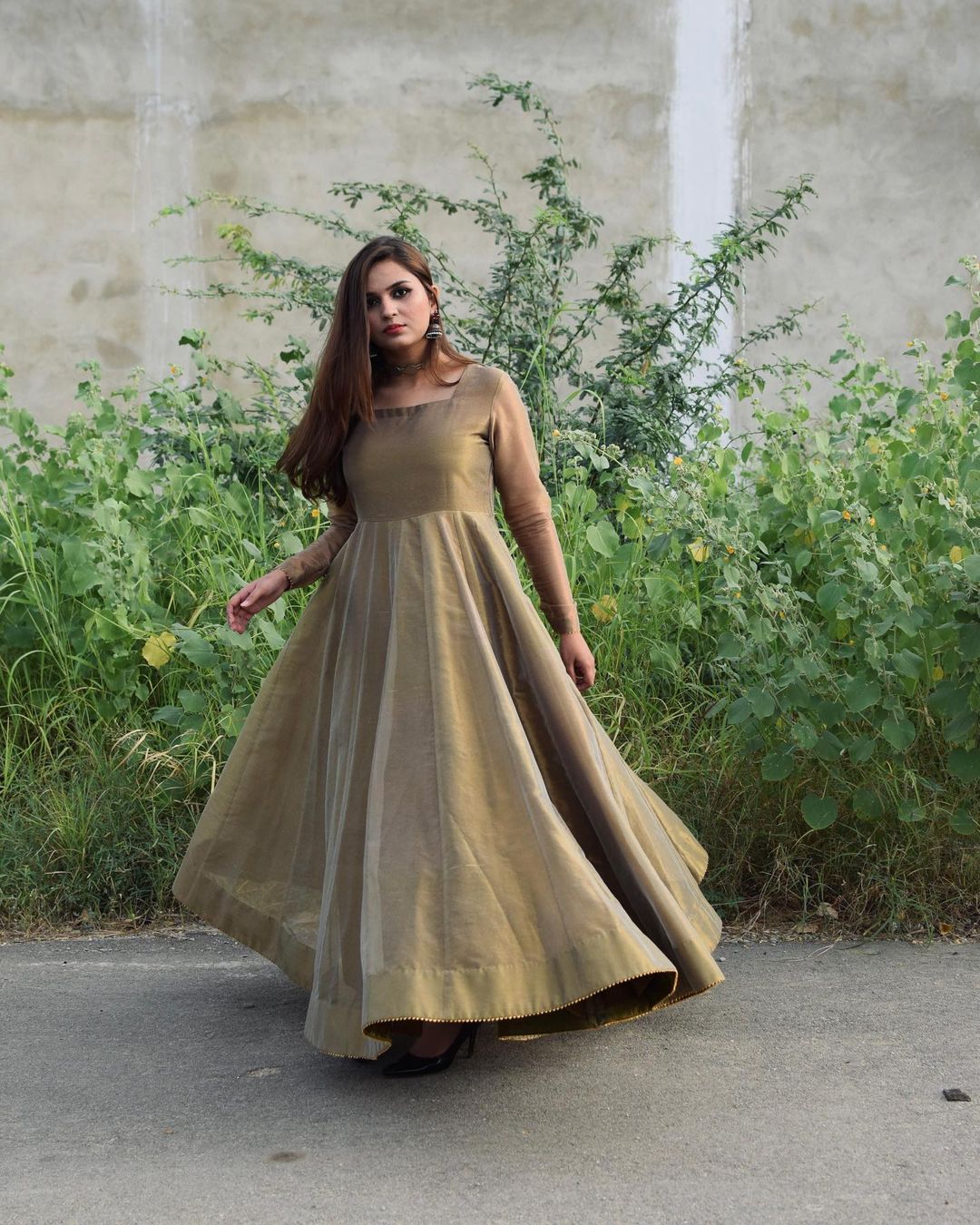 PRESENTING NEW BRONZE GOLD LAMA ANARKALI GOWN DUPPTA SET READY TO WEAR FULLY STTICHED