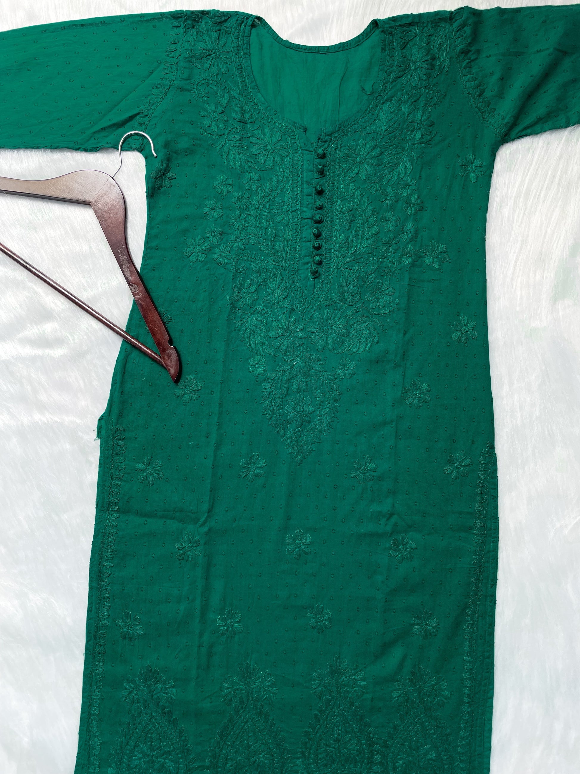 Handcrafted Dyed Lucknowi Chikankari Cotton Kurti, Palazzo & Dupatta Set