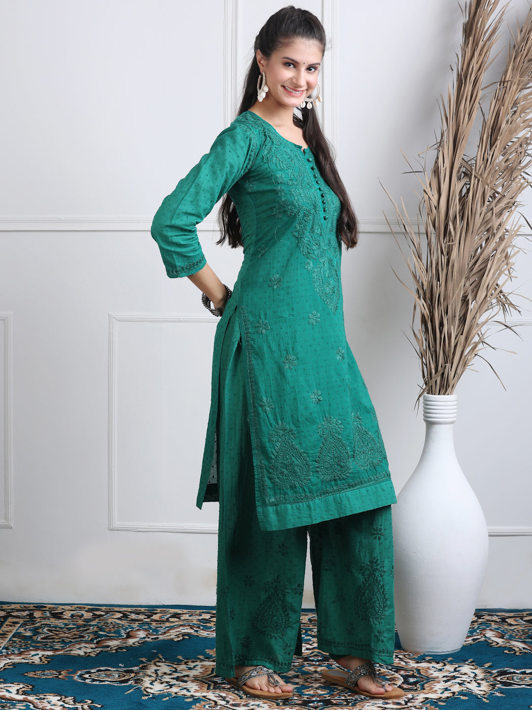 Style Name: Handcrafted Chikankari Soft Cotton Kurti Palazzo and Dupatta Set