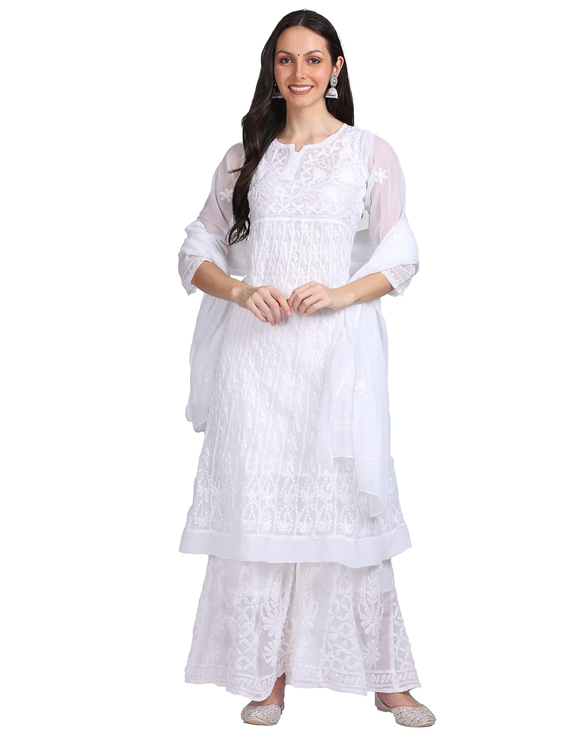 ✔ 100% Handcrafted Chikankari: Features the finest Lucknowi Chikankari stitches, carefully hand-crafted for an exquisite look.